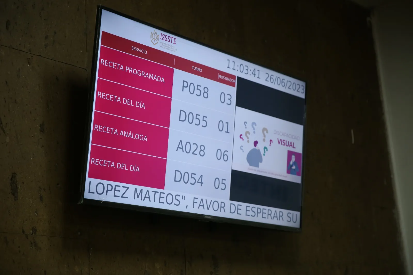 El Hospital Regional “Lic. Adolfo López Mateos” del Instituto de Seguridad y Servicios Sociales de los Trabajadores del Estado (Issste) instaló la farmacia digital, que funciona por emisión de turnos con tickets. El orden de atención aparece en pantallas.