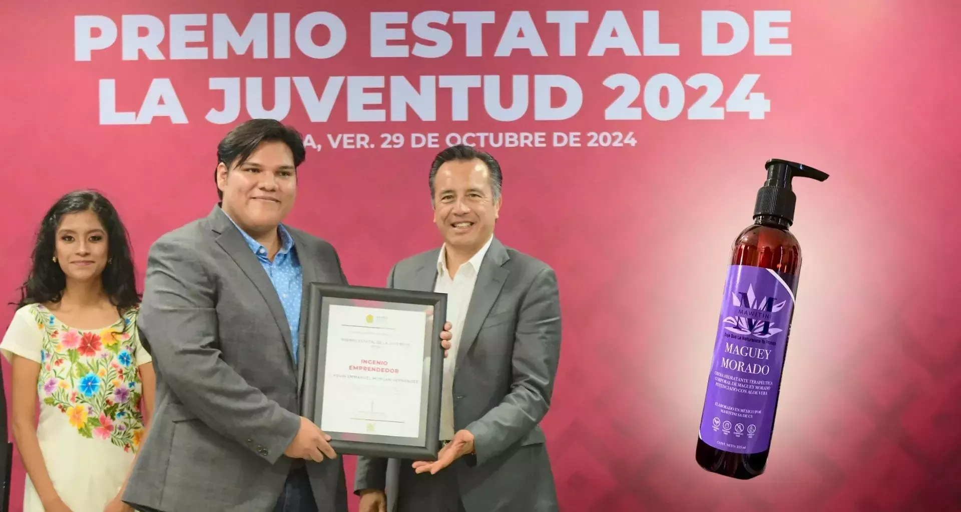 Con la mezcla de ingredientes orgánicos que incluye el maguey morado, Kevin Morgan creó Mawitini, una crema para pacientes diabéticos, proyecto con el que ganó el Premio Estatal de la Juventud 2024 de Veracruz.